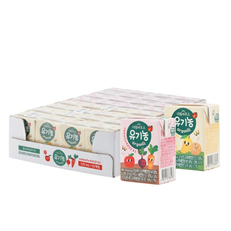아이들이 좋아하는 요즘 가장 좋아하는 유기농 주스는 서울우유의 아침주스입니다 영유아용으로 유기농 채소/과일 과채 농축액+물처럼 만들어진 아이들이 아주 자주 마시는 유기농 과채 음료입니다