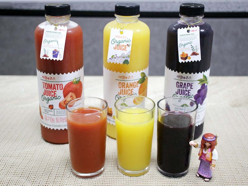 아이들이 좋아하는 요즘 가장 좋아하는 유기농 주스는 서울우유의 아침주스입니다 영유아용으로 유기농 채소/과일 과채 농축액+물처럼 만들어진 아이들이 아주 자주 마시는 유기농 과채 음료입니다
