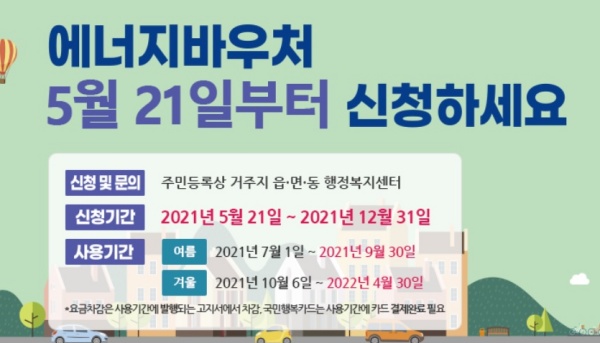 여기에 여름철 에너지 소비량이 높고 겨울철 에너지 소비가 낮은 편이라면 겨울 바우처의 일부를 앞당겨 사용할 수도 있기 때문에 45,000원까지는 여름 바우처로 사용할 수 있습니다. 단, 여름 바우처를 겨울에 사용할 수 없으며, 미사용 지원 금액은 소멸됩니다. 신규 바우처 신청방법